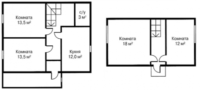 | Первый этаж: | 6х9, брус 150х150, высота 2.5 м. |